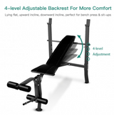 - 【Adjustable Height】This weight bench offers 4 levels height (18’’-31.5’’) to ensure you get the right workout.